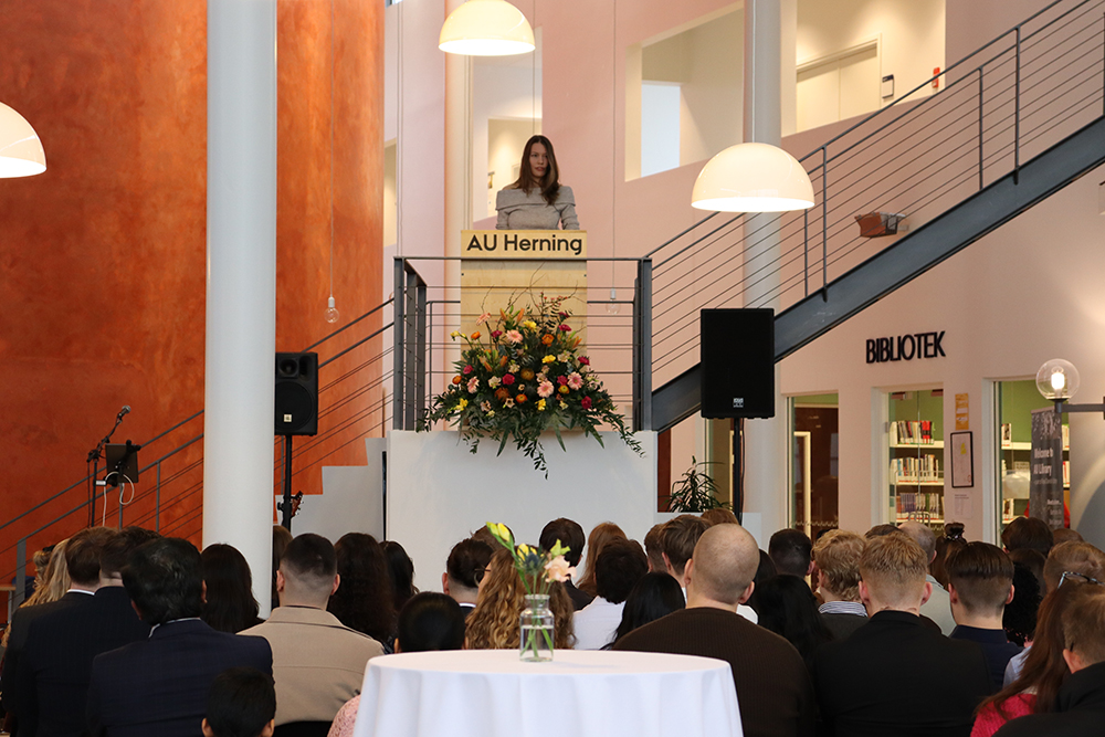 Afslutningsvis satte Malin ord på overgangen fra studieliv til næste kapitel. Nogle dimittender forlader AU Herning med job på hånden, andre med planer i støbeskeen og nogle stadig midt i overvejelserne. Fælles for dem alle er, at de nu står på egne ben:
