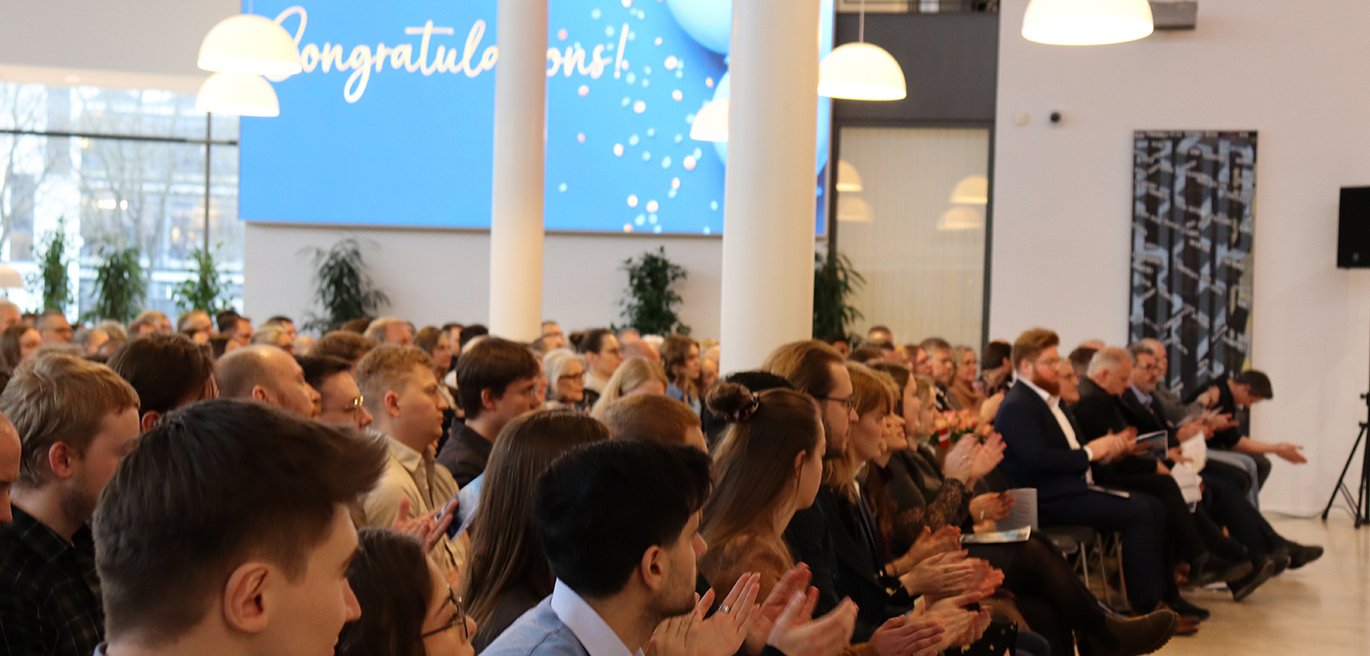 Kantineområdet var fyldt til sidste stol, da dimittender fra diplom- og civilingeniøruddannelserne sammen med familie og venner var samlet for at fejre afslutningen på studietiden og begyndelsen på næste kapitel. Institutleder Anders Frederiksen åbnede festlighederne med en varm velkomst og mindede om, hvor vigtigt fællesskab og samarbejde har været gennem studietiden.